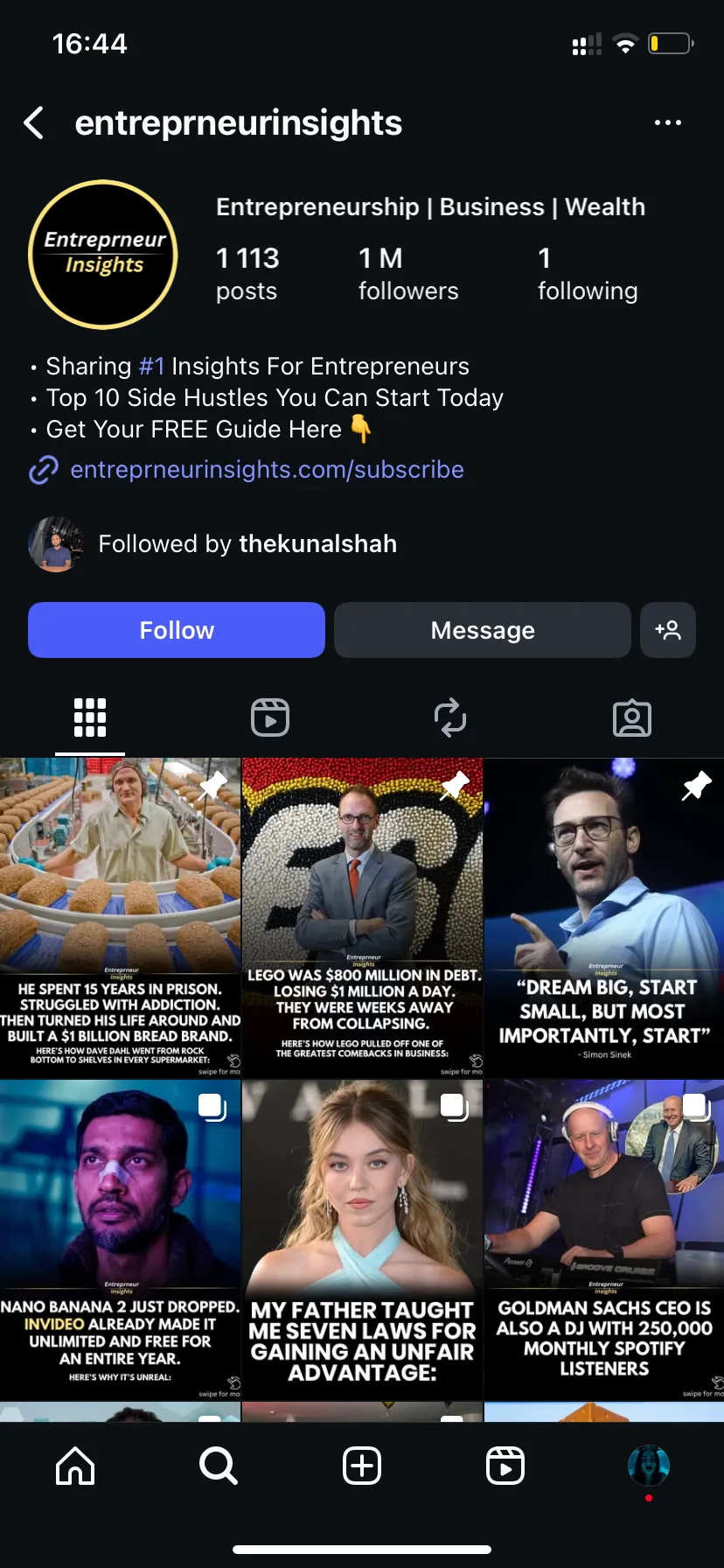 That’s when I started my personal brand @thekunalshah where I share everything I know about Instagram theme pages and making money with them.